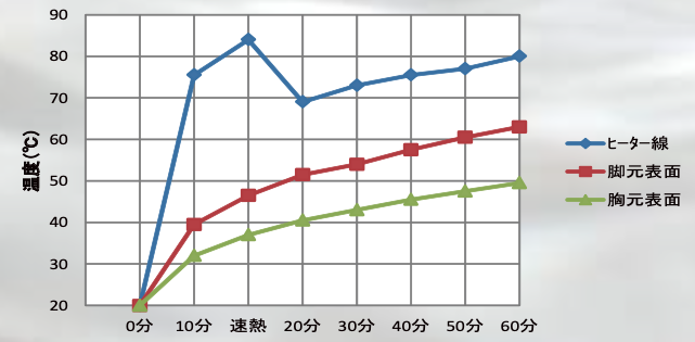 効率よく加熱しながら表面温度は安全に保たれ、特に冷えやすい脚元をしっかり温めます。